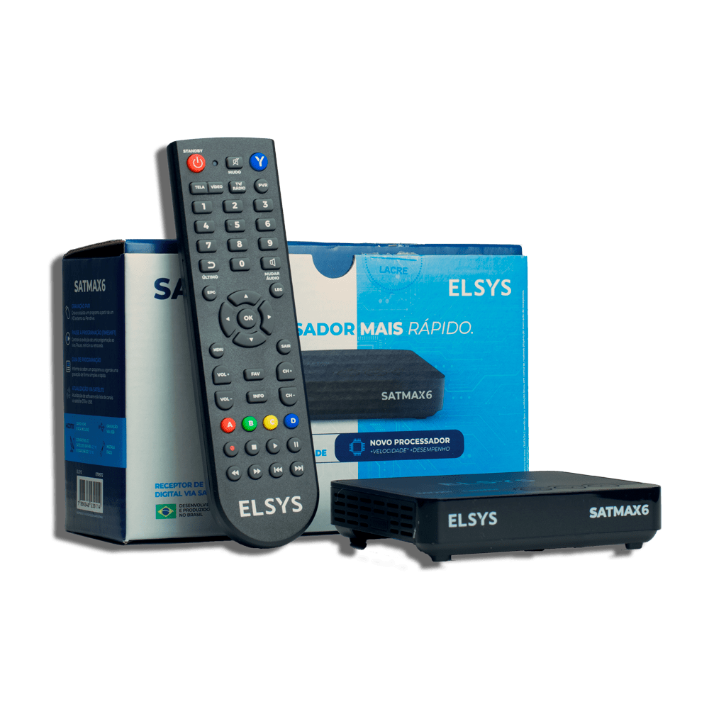 O receptor de tv satelite sathd satmax 6 é a mais recente inovação da Elsys no segmento de receptores de TV digital via satélite. Compatível com as bandas Ku e C, este modelo proporciona imagens e sons em alta definição, sem a necessidade de pagar mensalidades. Equipado com um processador veloz, o Satmax 6 garante uma navegação e uso ágeis e suaves.